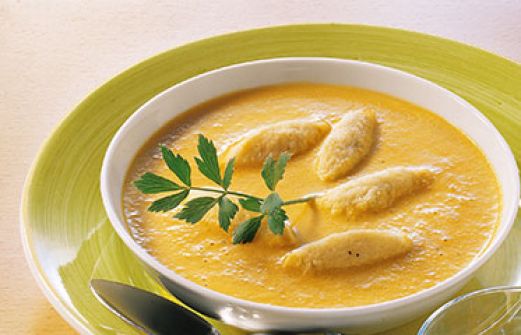 Karottensuppe mit Knöpfle Zutaten 3 EL Butter Salz 65 g Grieß 500 g Karotten 1 Zwiebel 1 l Brühe 1 Ei Pfeffer, frisch gemahlen Muskatnuss 3 EL Sahne Kräutersalz 1 TL Zitronensaft trockener Weißwein guk:similarity-keywords=""> 3 EL Butter , Salz , 6 [...]