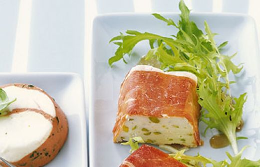 Ziegenfrischkäse mit Balsamico Zutaten 200 g Magerquark 125 g Ziegenfrischkäse 30 g gehackte Pistazien Salz Pfeffer 1 EL Butter 100 g Parmaschinken, dünn geschnitten 1 Bund Basilikum 2 TL Honig 4 EL Aceto balsamico 6 EL Olivenöl 1/2 Lollo rosso oder Frisée guk:similar [...]