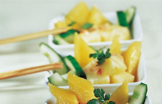 Gurkensalat mit Frucht Zutaten 2 EL getrocknete Garnelen 1 Salatgurke 1 kleine Ananas 1 Mango 2 Schalotten 4 Knoblauchzehen 4 rote Chilischoten 1 EL Öl 1 EL Palmzucker (als Ersatz geht auch brauner Zucker) 2 TL Fischsauce 4 EL Limettensaft Salz Korianderblättchen zum Bes [...]