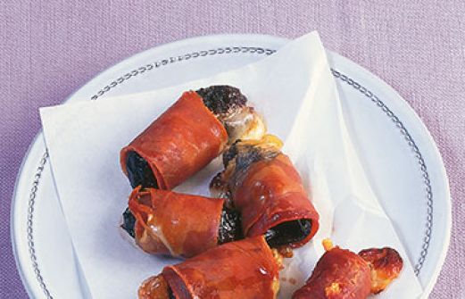 Pflaumen-Schinken-Bonbons mit Pecorino Zutaten 100 ml Rotwein 50 ml Orangensaft 20 Trockenpflaumen 60 g fester Pecorino 5 große Scheiben luftgetrockneter Schinken guk:similarity-keywords=""> 100 ml Rotwein , 50 ml Orangensaft , 20 Trockenpflaumen , 60 g fest [...]