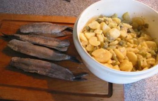 zutaten_2sp"> Zutaten für Personen Rezept mit Bild: Hauptgericht - Neuer Matjes im und am Kartoffelsalat Bild einstellen 4 Doppelte Matjesfilets 1500 gr. neue Kartoffeln 1 grössere Zwiebel 500 ml Brühe, ich n [...]