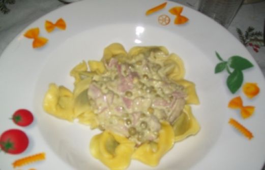 Menge Zutat 500 g Tortellini etwas Salz etwas Öl 1 Pck Kochschinken 1 Dose Champignons 1 Dose Erbsen 2 [...]