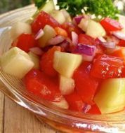 Menge Zutat 4 St Tomaten 1 St Salatgurke 1 St Zwiebel 2 EL Olivenöl 1 EL Zitronensaft 1 etwas Salz [...]