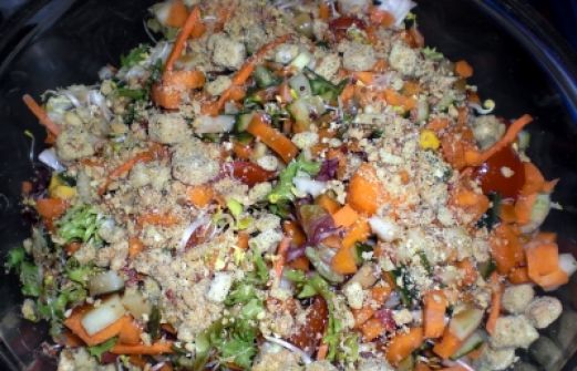 Menge Zutat 4 St Karotten 1 St Zwiebel 50 g Rucola 100 g Rotkohl 100 g Weißkohl 4 Schb Weißbrot 4 EL Ra [...]