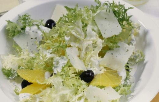 Menge Zutat 200 g Friséesalat 2 Orangen, groß 50 g schwarze Oliven, entsteint 2 Bch Knorr Salatkrönung Crème fraîche Dressing "Mediterrane Art" 80 g Manchego [...]
