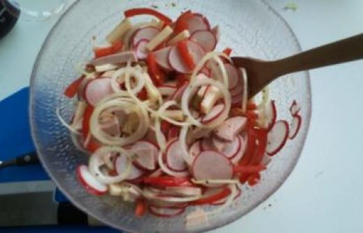 zutaten_2sp"> Zutaten für Personen Rezept mit Bild: Hot-Wurst-Salat Bild einstellen 200 Gramm Emmentaler 200 Gramm Lyoner fettarm 1 Stück Paprika rot 5 Stück Radieschen frisch 1 Stück Zwiebel 7 Stü [...]