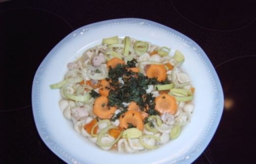 Menge Zutat 1 St frisches Hühnchen (gross) 1 Bund Suppengrün 2 St Zwiebeln (gross) etwas Salz, Pfeffer nach Geschmack 250 g Muschelnudeln [...]