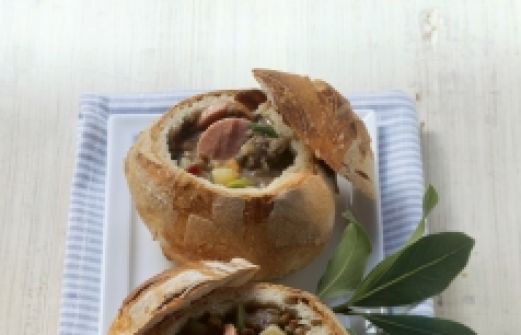 Menge Zutat 4 kleine Brotlaibe (a ca. 250 g) 400 g Lyoner 200 g braune Linsen 1 Möhre 1 Zwiebel 50 g Knollensellerie [...]