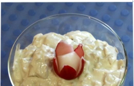 Menge Zutat 400 g Hähnchen- oder Putenfleisch, gebraten, klein geschnitten 60 g Mayonnaise 120 g Schmand, (saure Sahne) 2 St Sardellen aus dem Glas, gewässert, fein gehackt oder Sardellenpas [...]