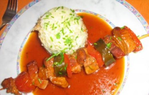 zutaten_2sp"> Zutaten für Personen Rezept mit Bild: Schaschlik von der Pute mit Gemüse an Basmatireis Bild einstellen 500 g Putenbrust 300 g Bauchspeck 1 Stück Paprika rot 1 Stück Zucchini 1 Stück Zwi [...]