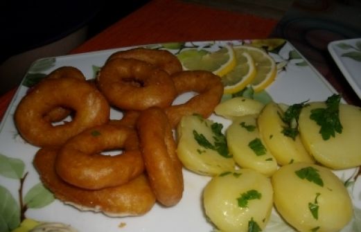Menge Zutat 500 g Tintenfischringe im Backteig, z.B. TK-Ware 400 g Kartoffeln 500 ml Öl zum Ausbacken 1 Zitrone 1 zw Petersilie [...]