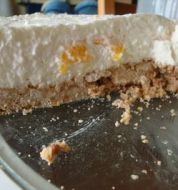 Ergibt : 1 Torte 200 g Walnüsse, gehackt 75 g Rohrzucker 45 g geschmolzene Butter 475 g pürierte Kaki 675 g Frischkäse, cremig gerührt 250 g Zucker 170 g saure Sahne 1/4 TL Zimt 1/2 TL Ingwer 6 Eier Für den Belag: 300 g saure Sahne 40 g Zuck [...]