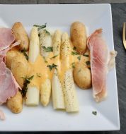 zutaten_2sp"> Zutaten für Personen Bild einstellen 2 kg Spargel weiß frisch 24 Frühkartoffeln 6 Scheiben Metzgerschinken, gekocht Salz, Zucker 250 g Butter 3 Eigelb 3 EL Wasser 1 EL Zitronensaft frisch gepresst [...]