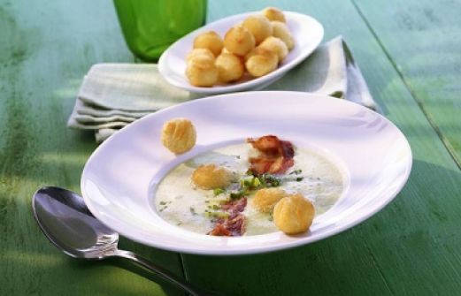 Menge Zutat 450 g McCain Pom Poms (1 Packung) 1 EL Butter 1 Stg Lauch (250 g) 3 EL Mehl (60 g) 1/4 l Gemüsebrühe 100 ml Sahne [...]