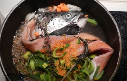 Menge Zutat 1 St Lachs-Karkasse (oder anderen Fisch) 500 g gemischte Salzwasser-Fischfilets zB Heilbutt, Lachs, Kabeljau 1 St Fenchel mit viel grün!! 1 Bund Suppengrün [...]