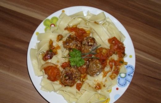 Menge Zutat 250 g Tatar (Rinderhackfleisch) 50 g Maiskörner 50 g Schafskäse 2 Schb Kochschinken 4 große Tomaten 250 g Bandnud [...]