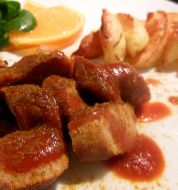 Menge Zutat 1 Pk tiefgefrorene Pommes frites (750 g) 1 St mittelgroße Zwiebel 2 EL Öl 1 EL Curry 200 g passierte Tomaten 3 EL Weißw [...]