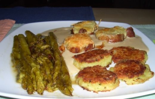 Menge Zutat 1 St Schweinelende (ca. 600g) 4 gl grüner Spargel 800 g Kartoffeln 2 St Zwiebeln 250 g geriebener Käse 1 Bund Petersili [...]