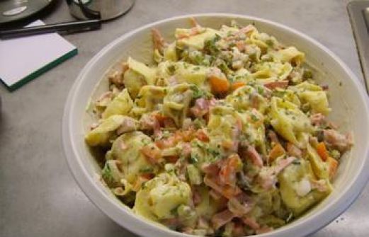 zutaten_2sp"> Zutaten für Personen Bild einstellen 1 Zwiebel gewürfelt 1 Lauchzwiebel frisch 3 Radieschen 1 Paprika rot 100 g Erbsen 500 g Tortellini gefüllt mit Fleisch 150 g Fleischwurst 200g Fleischsalat Gru [...]