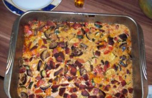 zutaten_2sp"> Zutaten für Personen Rezept mit Bild: würziges Paprikagemüse mit Knoblauchwurst Bild einstellen 250 Gramm Aubergine frisch 250 Gramm Zucchini 1 jeweils rote, grüne und gelbe Paprika 1 Bund Frühli [...]