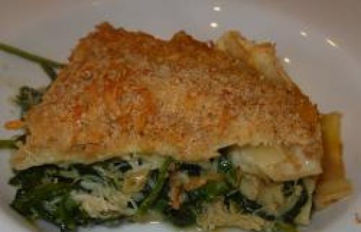Portionen : 4 6 Lasagneplatten 1 EL Öl 1 Zwiebel, klein gehackt 2 Knoblauchzehen, fein gehackt 4 Lachsfilets (TK), aufgetaut 500 g Blattspinat 1 Glas Weißwein Salz Pfeffer Für die Béchamelsauce: 25 g Butter 3 EL Mehl 250 ml Sahne 1/2 TL Sa [...]