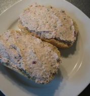 Menge Zutat 1 Dose Thunfisch in Wasser 1 EL Ketchup 2 EL Remoulade 2 EL Schnittlauchröllchen 2 EL Zwiebelwürfel, rot-weiß, (TK-Ware) e [...]