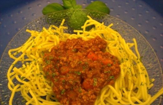Menge Zutat 3 St Möhren (gelbe Rüben) 250 g Hackfleisch 1 Pk Bolognese (Fertigprodukt) 3 EL Basilikum Bestellen 250 g Spaghetti e [...]