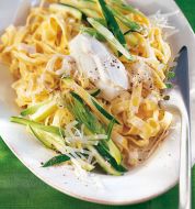Portionen : 4 75 g Butter 250 ml Sahne 100 g geriebener Parmesan 2 TL Stärke 125 ml Wasser Salz Knoblauchpulver gekochte Fettucchine gegartes Hähnchenfleisch Zub.: 10 Min. | Kochzeit: 10 Min. 1. In einer Pfanne auf dem Herd Butter in Sahne schmel [...]