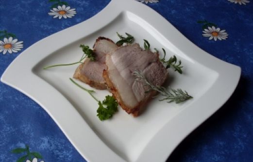 Menge Zutat 1,30 kg Schweinebraten mit Schwarte Bio-Qualität 4 Schalotten 1 hv Kräuter nach Gusto 1 Prise Kräutersalz eigene Herstellung gemischt mit Bärlauchsalz 1 [...]
