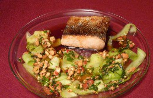 zutaten_2sp"> Zutaten für Personen Bild einstellen 5 Stk. Gurken 50 gr. Zucker 2 Stk. Peperoni 1 Bund Koriander frisch 0.5 Päckchen Erdnuss 1 Schuss Olivenöl 5 Stk. Lachsfilet 100 ml Honig 50 ml Sojasoße 1 S [...]