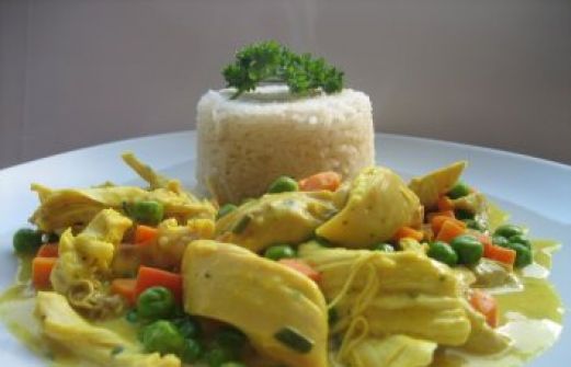 zutaten_2sp"> Zutaten für Personen Bild einstellen 1 fertiges Grillhähnchen z.B. von "Hahn im Korb" 300 g Tiefkühl-Erbsen- und Möhrengemüse 200 ml Hühnerbrühe 150 g Sahnejoghurt 0.1 g gemahlenen Safran 1 TL getrockneten Es [...]