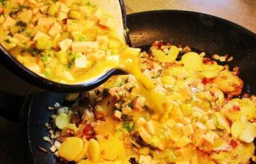 zutaten_2sp"> Zutaten für Personen Rezept mit Bild: Kartoffelpfanne ... Bild einstellen 10 kl. Pellkartoffeln vom Vortag 5 Scheiben Bacon 3 kl. Zwiebeln gewürfelt 5 Eier 3 Esslöffel Natürliches Miner [...]