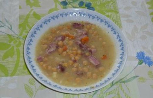 zutaten_2sp"> Zutaten für Personen Rezept mit Bild: Erbseneintopf Bild einstellen 350 g Kichererbsen 1 kg Kasselerrippchen 1 Zwiebel 1 Bund Suppengrün frisch 700 g Kartoffeln 2 Knoblauchzehen zerd [...]
