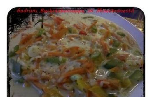 zutaten_2sp"> Zutaten für Personen Rezept mit Bild: Suppe: Buchstabensuppe im Minestrone-Stil Bild einstellen 0.5 L. Wasser 0.5 kleine Tasse Buchstaben-Nudeln für Suppen 2 mittelgrosse Möhren, in feine S [...]