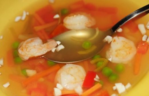 zutaten_2sp"> Zutaten für Personen Rezept mit Bild: Feine Gemüsesuppe mit Garnelen und Gemüseeinlage Bild einstellen für die klare Gemüsebrühe 1500 ml Wasser 1 Lorbeerblatt 1 Gemüsezwiebel frisch 4 Nelke [...]