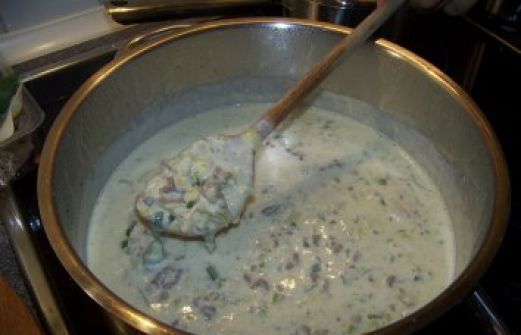 zutaten_2sp"> Zutaten für Personen Rezept mit Bild: Käsesuppe mit Hackfleisch und Porree Bild einstellen 2 Stangen Porree 500 g Hackfleisch 2 Liter Gemüsebrühe 750 g Schmelzkäse, Sahne/Kräuter gemischt; Zirkaa [...]
