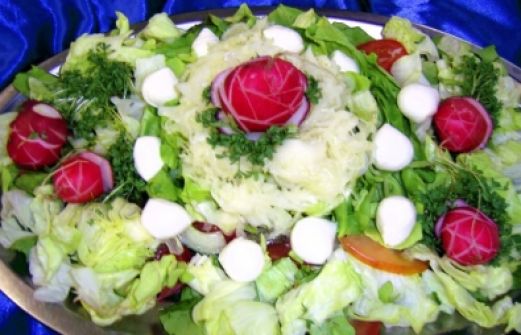 Menge Zutat 500 g Krautsalat (Kühltheke) 1 St Eisbergsalat 1 St Kästchen Kresse 12 St Radieschen 1 St Gemüsezwiebel 2 Pk Mozzare [...]