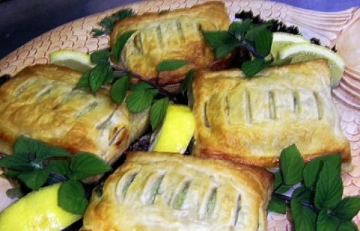Menge Zutat 1 Pk TK-Blätterteig 2 St Hähnchenbrustfilets etwas Salz Pfeffer etwas Paprika edelsüß 60 cl Olivenöl 1 Bund Frü [...]