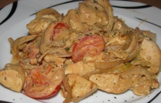 Menge Zutat 1 St Hähnchenbrustfilet ca.150 Gramm 1 St Zwiebel etwas Pfeffer, Salz und Paprika 150 ml Geflügelbrühe 3 EL Frischkäse Tomate-Kräuter [...]