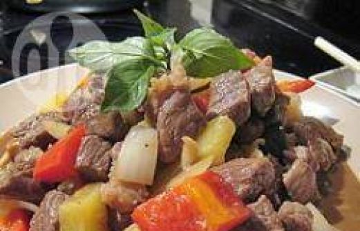 Portionen : 4 Marinade: 1/2 TL Zucker 1 TL Salz 1/2 EL leicht gesalzene Sojasauce oder 1 EL normale Sojasauce 1-2 EL Speisestärke, angerührt mit 1 EL Wasser 450 g Rindersteak, gewürfelt 1 EL + 1 EL Öl 1/2 EL + 1 EL Knoblauch, gehackt 1 mittelgroße Zwiebel [...]