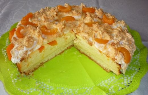 Käse - Pfirsichkuchen mit Baiserhaube im FlavorWave-Oven gebacken.