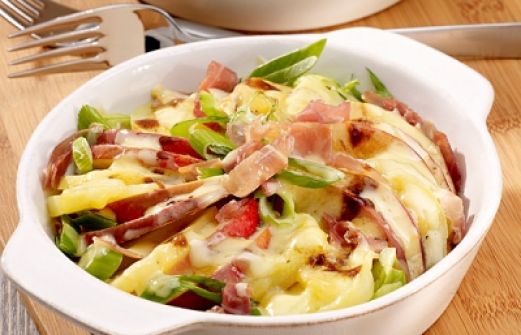 Menge Zutat 800 g mehligkochende Kartoffeln 3 Äpfel 4 Lauchzwiebeln 100 g Parmaschinken 150 g milder Gouda 1 Knoblauchzehe [...]