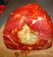 Menge Zutat 1 kg Schweinerollbraten Pfeffer Salz 1 TL Rosmarin 150 g gewürztes Kalbsbrät 4 EL Sahne 100 g [...]