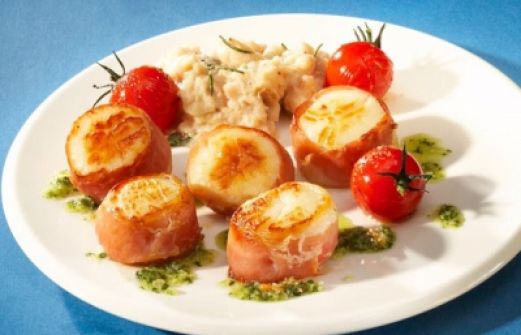 Menge Zutat 250 g Jakobsmuscheln 5 Schb Tiroler Speck 300 g Kirschtomaten 200 g weiße Bohnen 50 g frischer Rucola 50 g Parmesan [...]