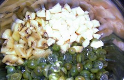 zutaten_2sp"> Zutaten für Personen Rezept mit Bild: Stachelbeer - Kiwi - Apfel - Marmelade Bild einstellen 550 g Stachelbeeren frisch 250 g Kiwi frisch 250 g Äpfel frisch 1 Zitrone 0.5 TL Süßstoff [...]