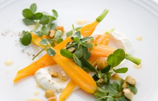 Menge Zutat 15 junge Biokarotten 250 g Naturjoghurt 1 Bund Portulak Salat 1 Bund Vogelfuß-Hahnenklee 125 g Mandeln, grob gehackt 1 C [...]