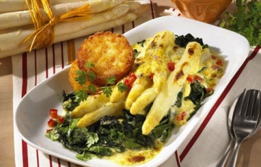 Menge Zutat 1 kg weißer Spargel Salz 1 St mittelgroße Zwiebel 800 g Spinat 2 EL Öl Pfeffer 2 St [...]