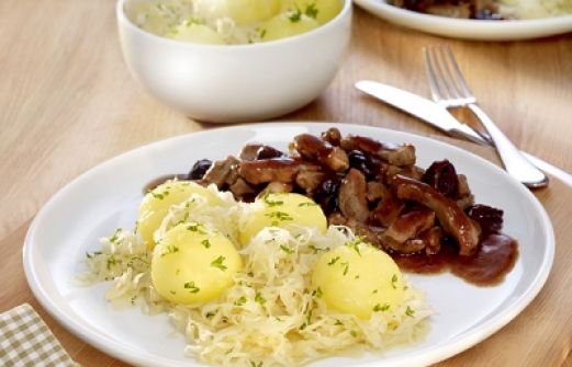 Menge Zutat 1 Pck Kloßteig halb und halb (750 g) 1 Dose Sauerkraut (770 g) 600 ml Brühe 600 g Schweinefilet 2 EL Pflanzenöl 3 kleine [...]