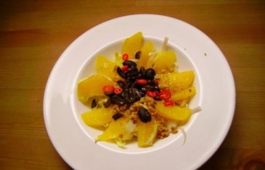 Menge Zutat 4 Orangen 4 Stauden Chicorée 1 Chilischote 2 EL Essig Salz 4 EL Olivenöl schwarzer Pfef [...]