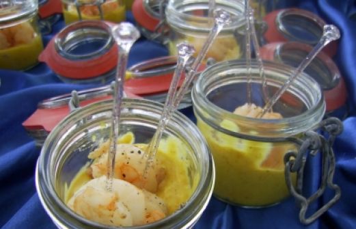 Menge Zutat 8 St Gambas, TK-Ware 2 EL Creme double 1 EL Creme fraiche 2 TL Zucker 2 TL Curry etwas Salz 2 [...]
